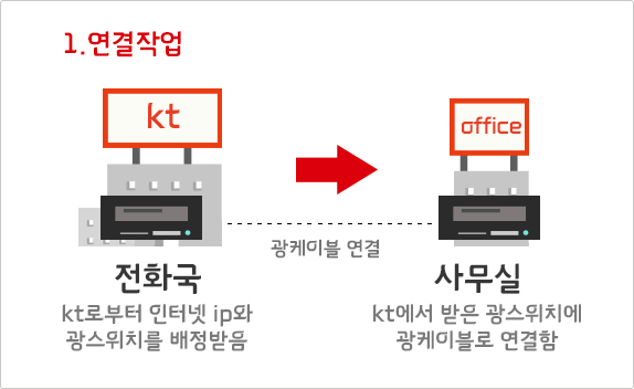 1. 서버가 없는경우 : 사무실에 배정받은 광스위치를 kt 전화국과 연결하면 기가인터넷구축 완료!!