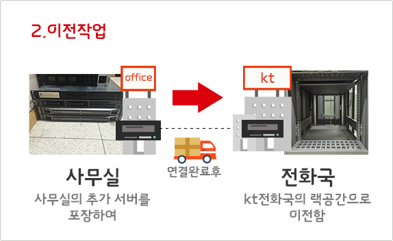 2. 서버가 있는경우 : 초고속 기가인터넷 연결 이후 사무실의 서버를 센터에 설치하면 이전 완료!!